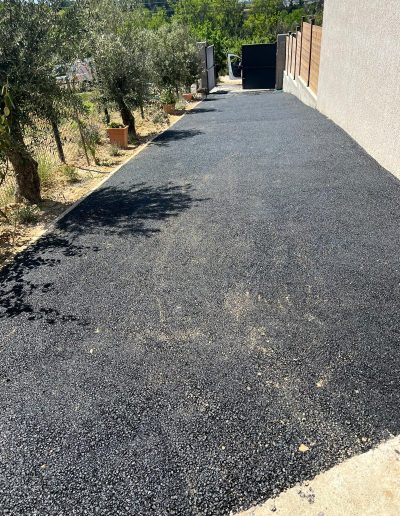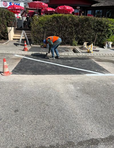 Nous assurons la pose professionnelle de revêtements en enrobé pour vos chemins d’accès et parkings, créant une surface durable, résistante et esthétique, préparée à un usage intensif.