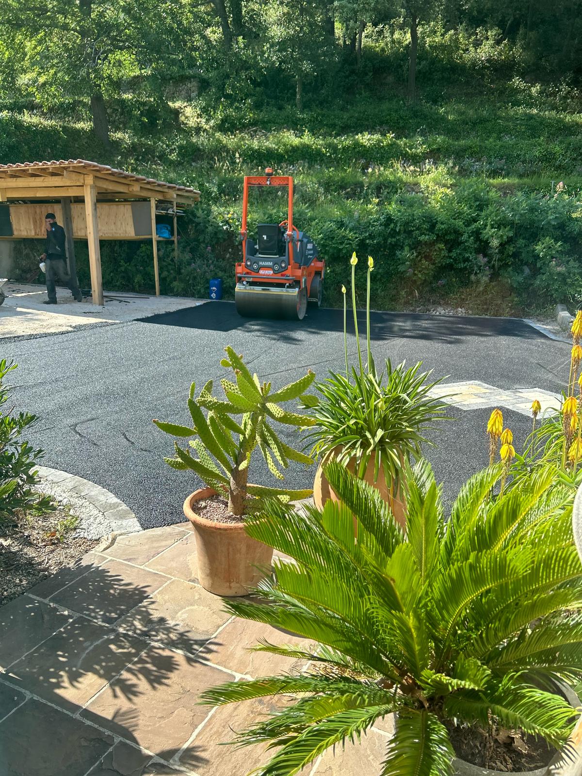 Pose de revêtement en enrobé pour chemin d’accès et parkings